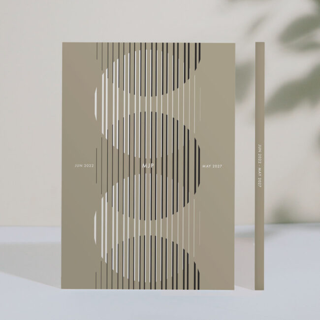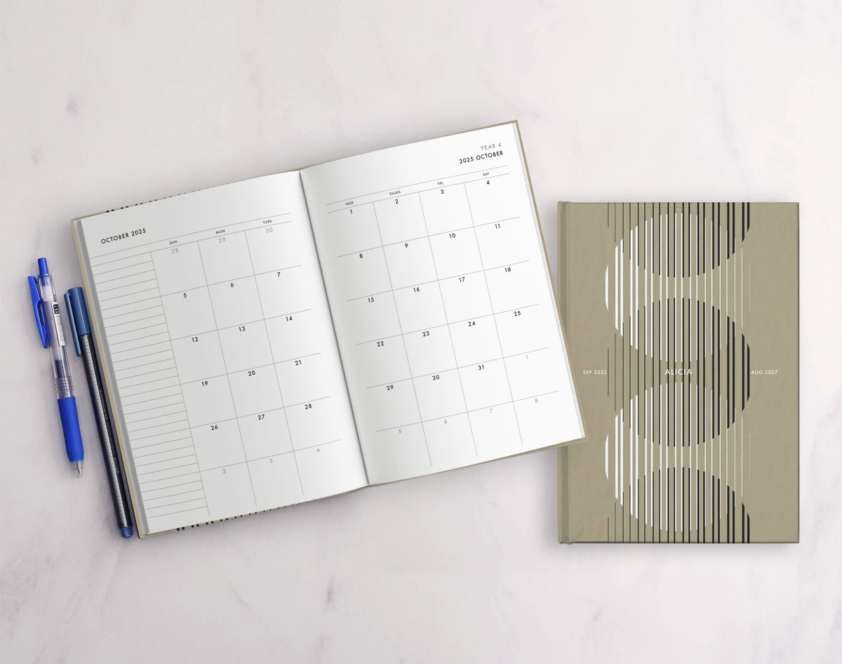 5 year monthly planner in a warm neutral. Size A5, 7x10 or 8.5x11 inch journal, 140 pages.